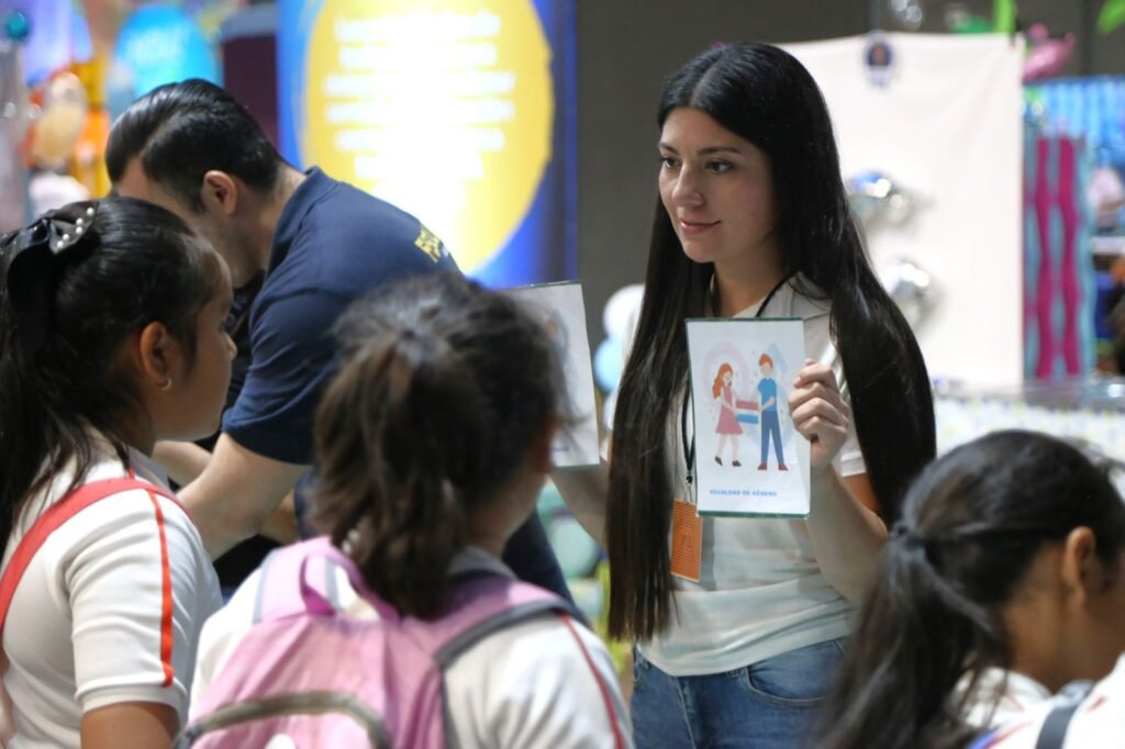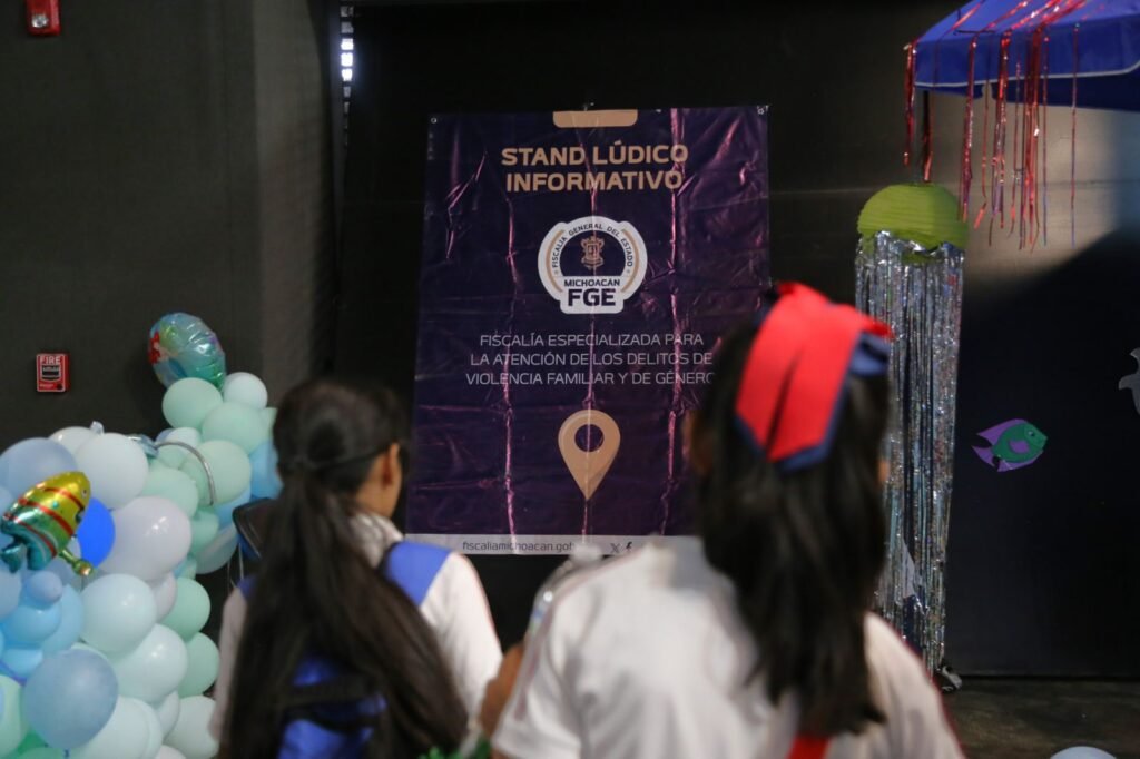En el stand se encuentran agentes del Ministerio Público, Peritos, Policías de Investigación, Psicólogas, Pedagogas y Trabajadoras Sociales, pertenecientes a la Fiscalía Especializada para la Atención de Delitos de Violencia Familiar y de Género, quienes promueven a las personas visitantes los derechos de las niñas, niños y adolescentes (NNA), además de explicar en qué consisten los diversos tipos de violencia.